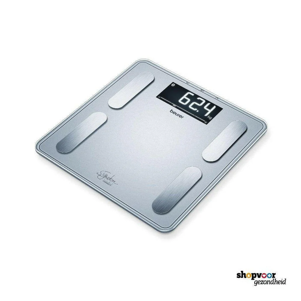 Met de Beurer BF405 personenweegschaal kun je behalve je gewicht, ook je vet- en vochtpercentage, je spier- en botmassa en je caloriebehoefte zien. Je kunt de gegevens eenvoudig naar je smartphone verzenden dankzij de Bluetooth-functie, zodat je via thuis of onderweg je gezondheid kunt monitoren.