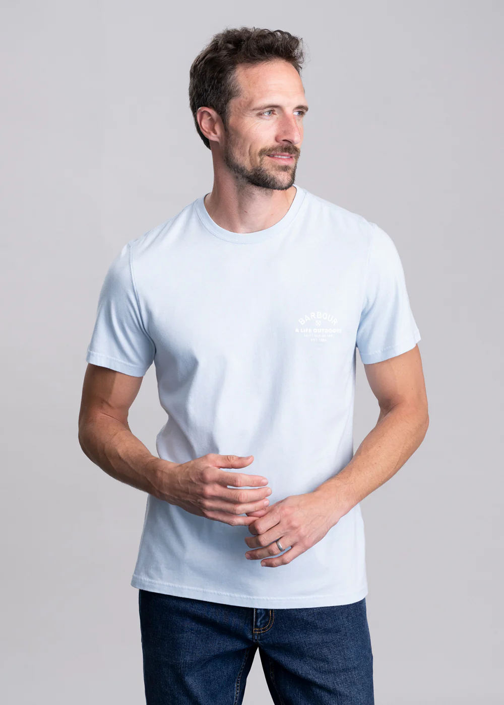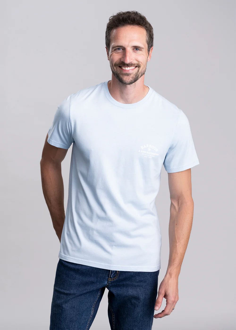 - Barbour branded graphic to left chest