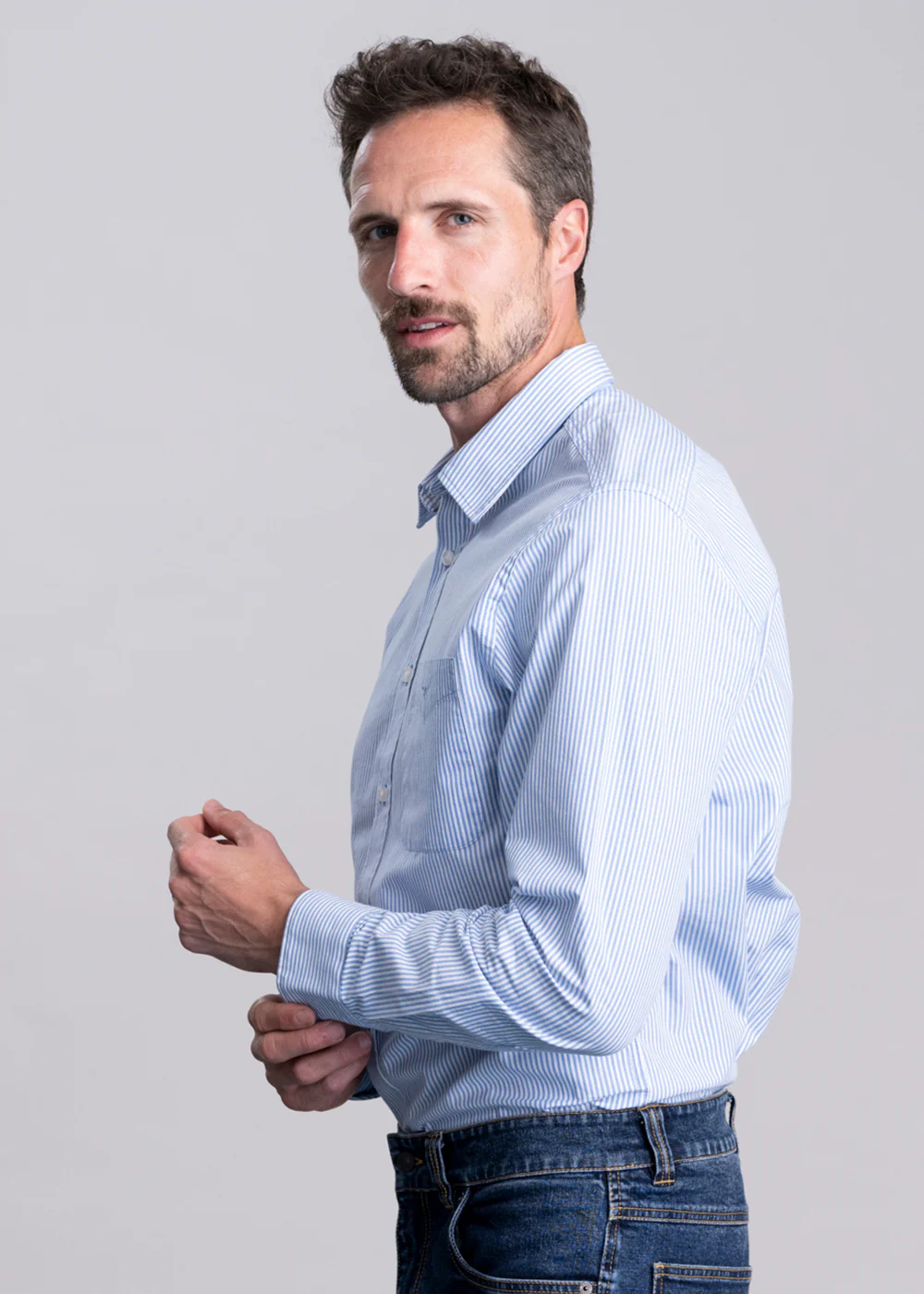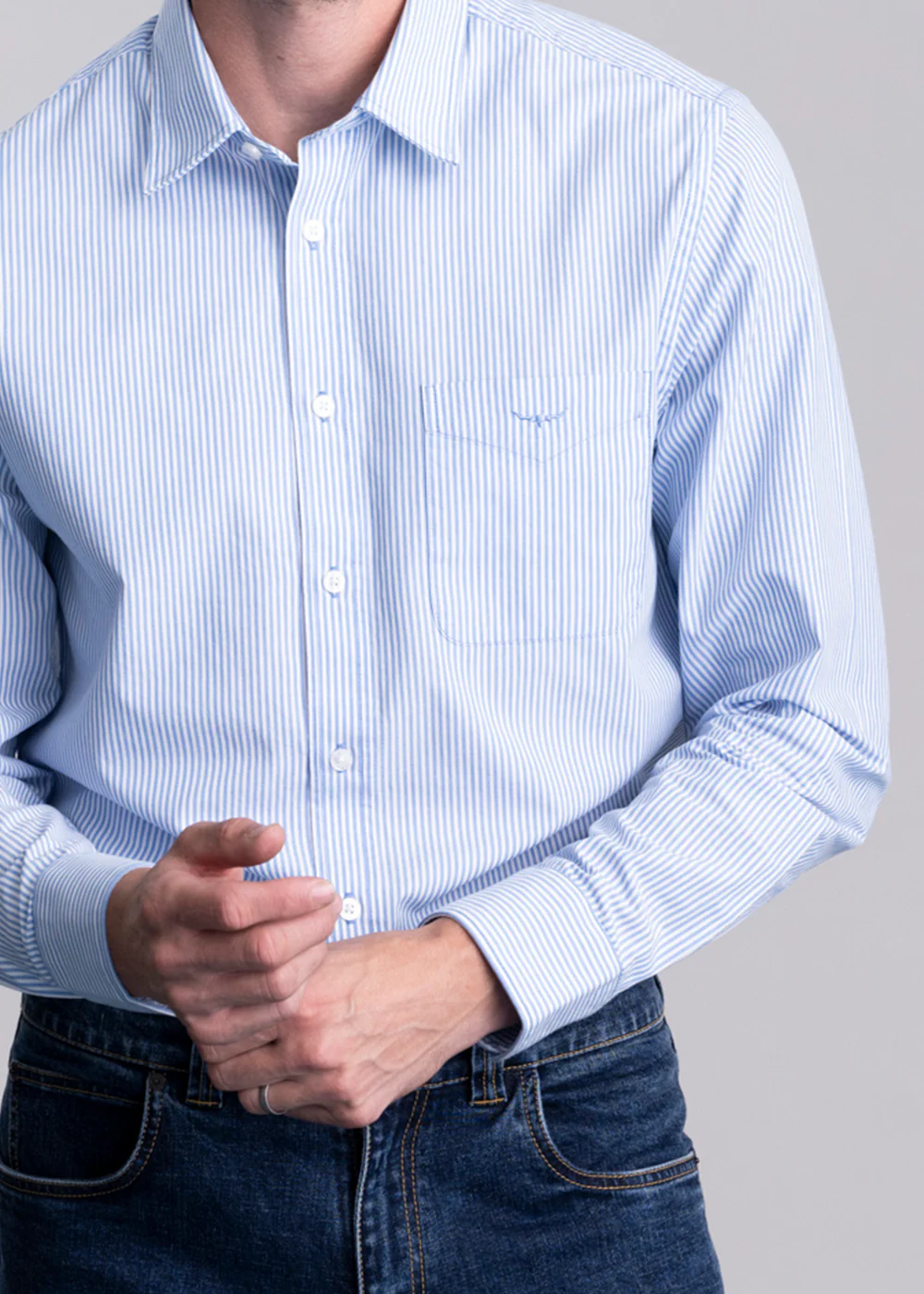 The Regular Poplin Stripe Shirt is a relaxed fit. Please refer to our Size Guide for more detailed measurements.