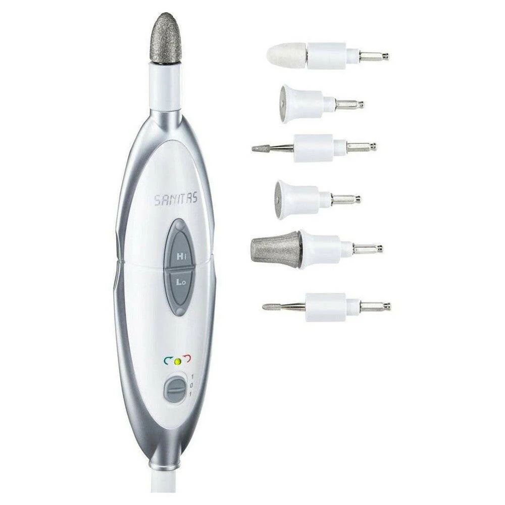 Met de Sanitas SMA 35 manicure- en pedicureset kun je thuis je handen, voeten en nagels op professionele wijze verzorgen. Dankzij de heldere LED-verlichting heb je goed zicht bij de hand- en voetverzorging. De snelheid van het manicure- en pedicure-apparaat is instelbaar op 2 standen. Daarnaast draait de Sanitas SMA 35 linksom en rechtsom. De manicure- en pedicure-set is ook geschikt voor diabetici.