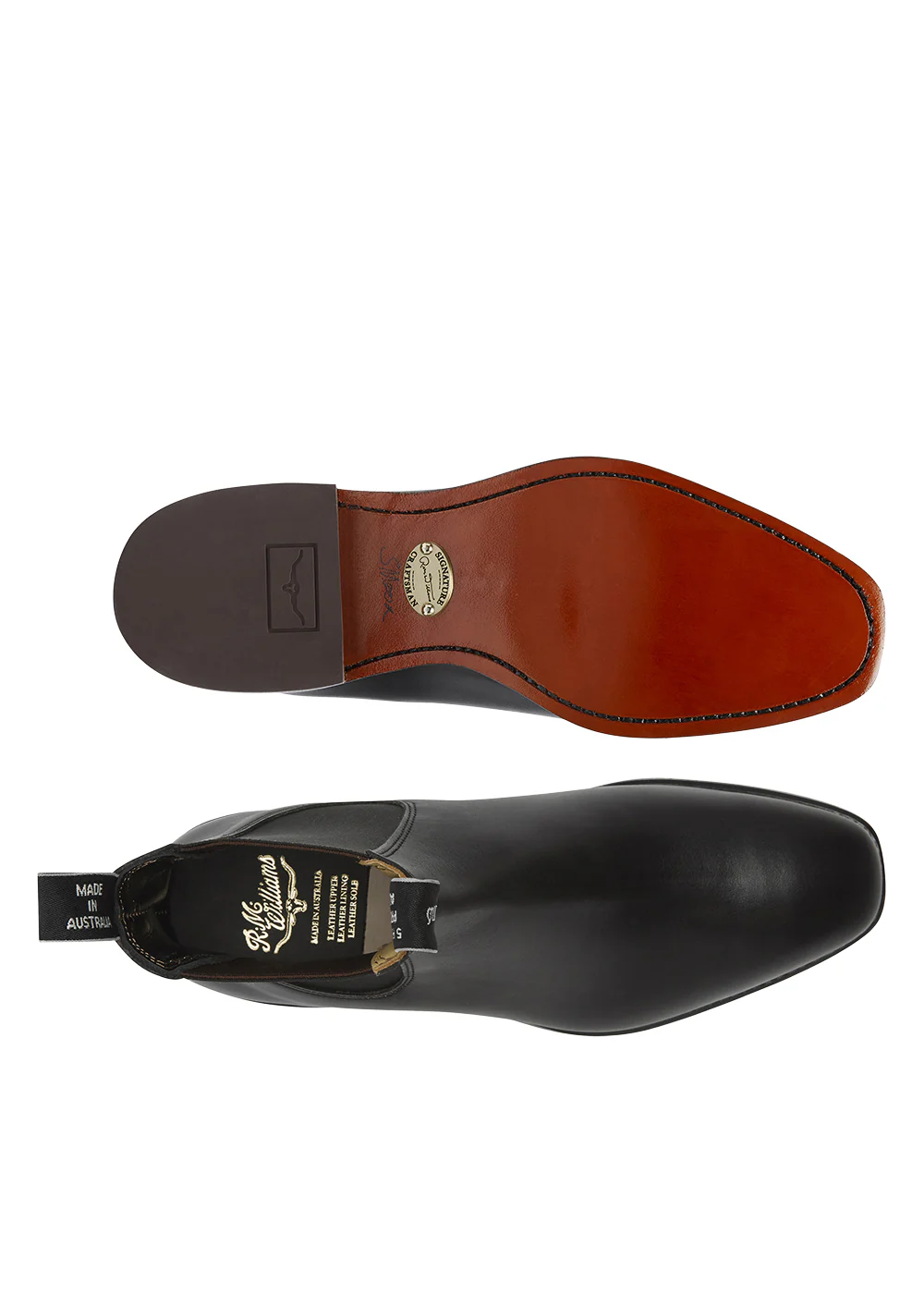 - Pull-on woven tugs with Signature RM Williams branding