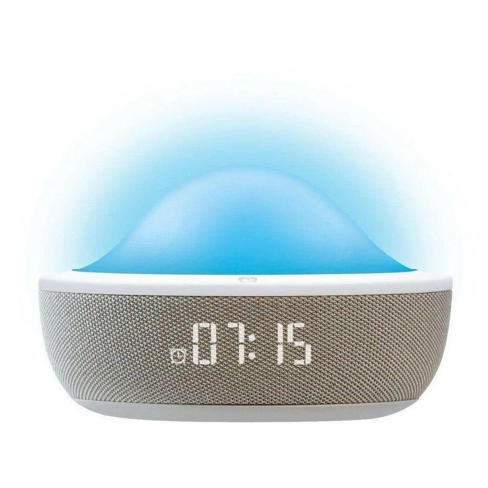 Het is mogelijk om ook muziek toe te voegen aan de wekker. Je hebt hierbij de keuze uit 6 rustgevende wekgeluiden. Wil je toch iets langer blijven liggen? Dan kun je de snooze-functie inschakelen door kort op de wekker te drukken.
